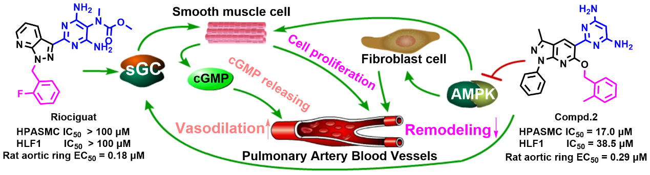 胡高云教授团队以研究论文的形式发表了题为“Discovery of Novel Pyrazolo[3,4-b] pyridine Derivatives with Dual Activities of Vascular Remodeling Inhibition and Vasodilation …