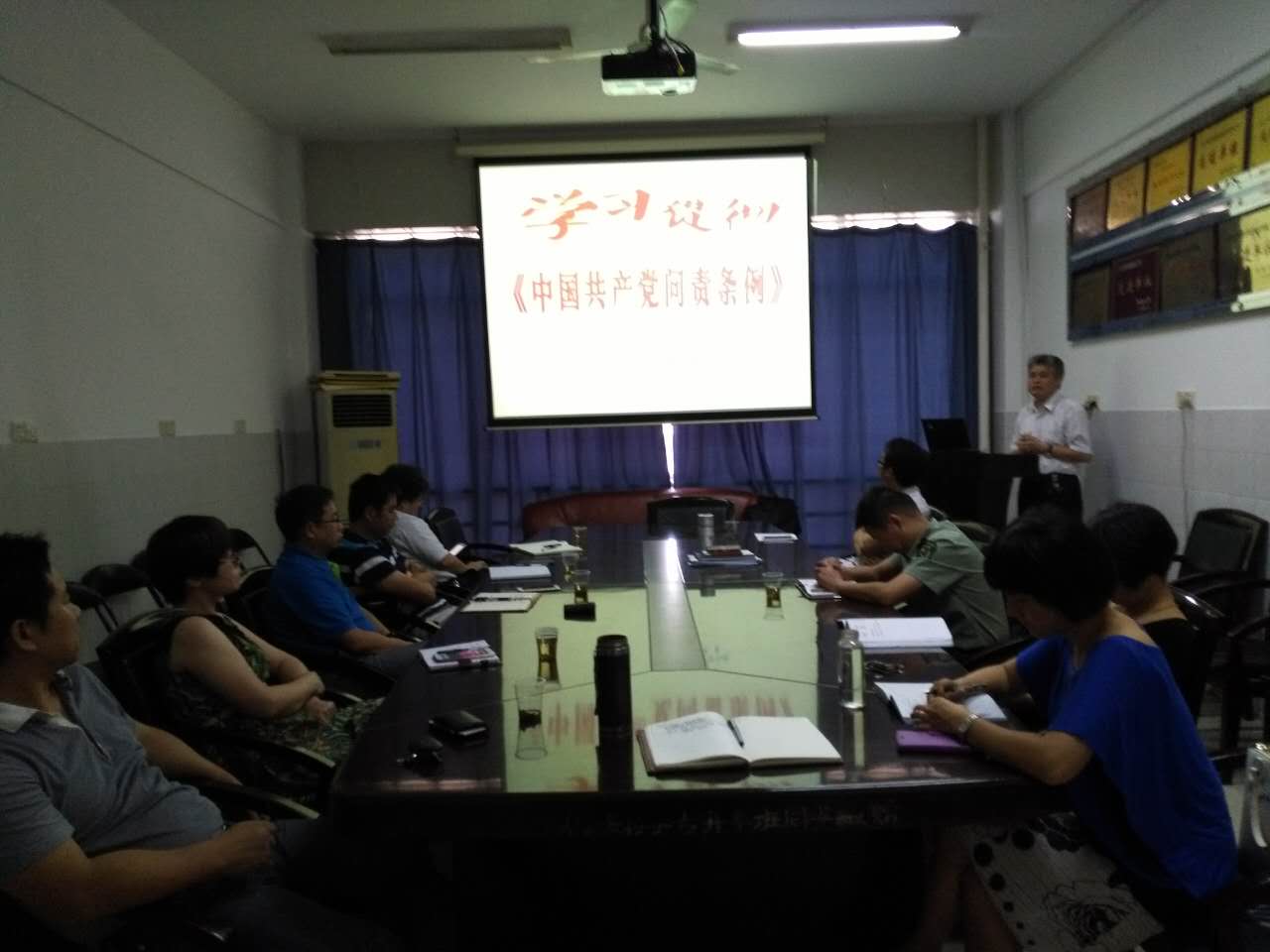 9月6日下午,药学院党委中心学习小组,根据学校党委、纪委的有关通知精神,专题学习了《中国共产党问责条例》。院党委书记彭林同志主持学习,并做了中心发言,解读《中国共产党问责条例》精神,同时就如何贯彻落实《中国共产党问责条例》
