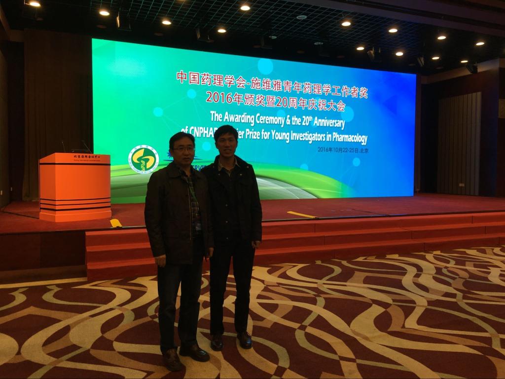 “中国药理学会第十四次全国学术大会暨中国药理学会-施维雅优秀青年药理学工作者奖20周年学术论坛”于2016年10月22-25日在北京国际会议中心隆重召开,期间举行了“中国药理学会-施维雅青年药理学工作者奖2016年颁奖暨20周年庆祝大会”。我院胡长平教授和张政副教授受邀参加了庆祝大会。