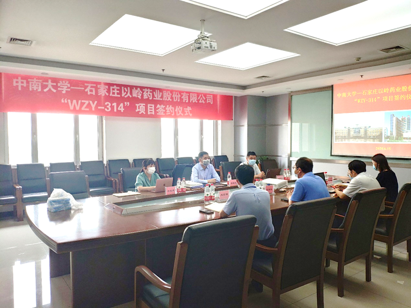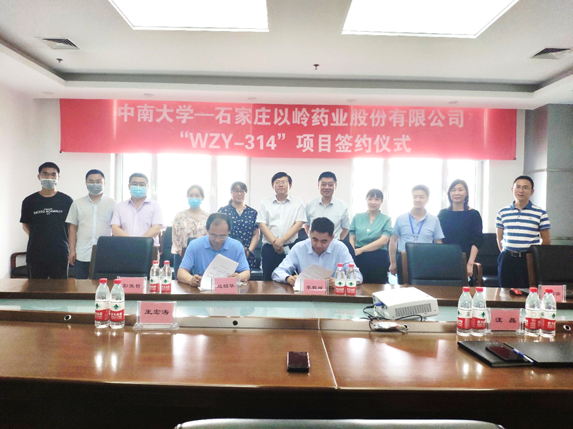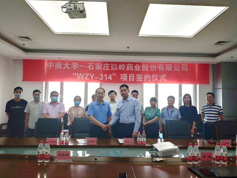 2020年6月15日,重大疾病小分子药物研究团队的胡高云教授、李乾斌教授和彭张哲副教授赴石家庄以岭药业进行签约,双方共同签署了WZY-314项目有关的转让合同,对前期研究材料进行了交接并就后续研究计划进行磋商。按照约定,以岭药业将在法定期限内就该成果申请国际PCT专利,并承担所有中国市场及国际市场后续开发工作,以岭药业将以里程碑现金加上市后提成的方式支付韩漫