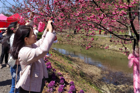三月的阳光普照着大地,樱花向阳怒放。大家漫步在近200亩的樱花园中,感受这里的独特之美,享受田野乡间的宁静与闲适,感受着春天的气息,精神和心态得到充分的放松。大家纷纷在美丽的樱花树下拍照留念,记录美好的瞬间。