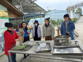 接着,大家积极参与了制作艾叶粑粑的环节。女职工们采用新鲜艾草与糯米粉制成面团,并加入花生、芝麻、白糖为馅,用心搓揉、捏制,制作成具有传统文化特色和时令特点的艾叶粑粑。当自己亲手制作的艾叶粑粑在炉火中蒸煮后,那香甜的味道仿佛是对她们辛勤付出的最好回馈。