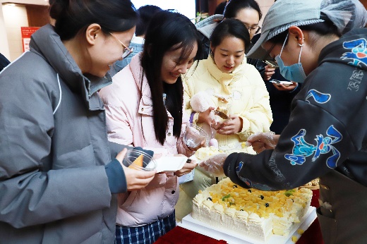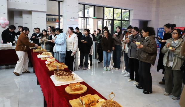 全体师生以温馨的集体生日会方式,共同表达对母校的深情祝福。活动在学院大厅举行,师生们齐聚一堂,品尝生日蛋糕与奶茶,分享喜悦与感动,现场气氛融洽温馨。