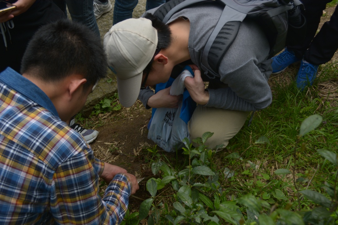 队伍中的男同学们主动承担重活累活,刘满仓同学在前面为我们开路,金磊同学一路上都主动提着植物收集袋和标本箱,陈鑫同学则拿着铲子等工具承担挖掘等脏活累活,在较难走的下山坡他们还会细心提醒后来的同学注意脚下,让同学们感到很温暖。