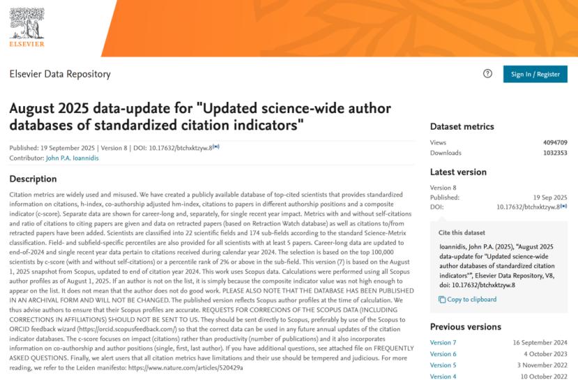 据悉,全球前2%顶尖科学家榜单从全球近700万名科学家中,通过基于其论文引用数、h因子、合著者修正的hm因子、单独或第一作者的文章引用数等综合参数,遴选出世界排名前2%的科学家,涵盖22个领域和174个子领域。